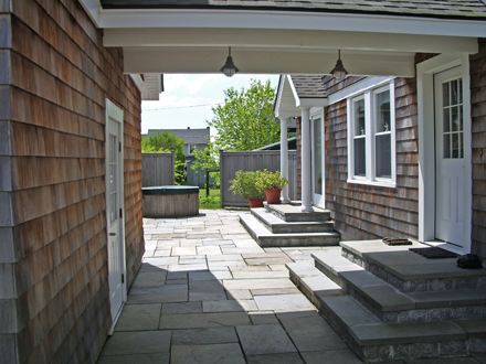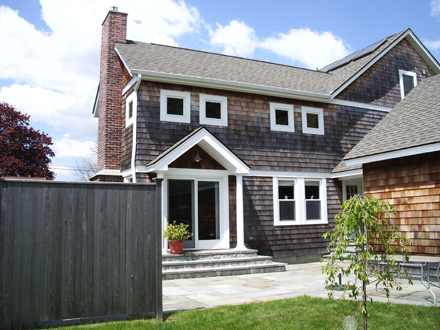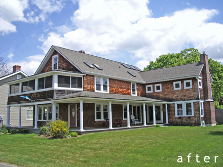 The traditional New England cedar style evident in adjacent houses was maintained in the remodel, an important contextual component of the neighborhood fabric.