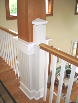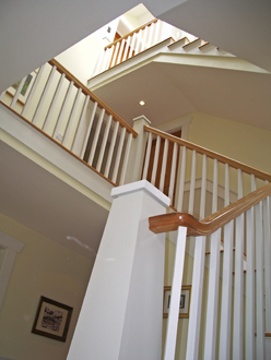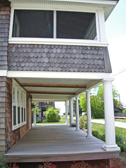 The wrap around porch at the first floor and the second floor sleeping porches were carefully reconstructed or left untouched. Their openness contributes to the social character of the neighborhood, especially in the summer months. The volumes within the house frame views to Long Island Sound and suggest occupant movement through the space. Large operable skylights in the tall space at the new addition promote natural summer ventilation and decrease the need for air conditioning in the humid summer months.